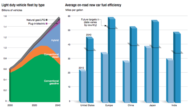 La multinacional Exxon Mobil ha publicado su informe anual donde se exponen las estimaciones de la compañía de las necesidades de energía a largo plazo y donde se constata la evolución de los vehículos híbridos y eléctricos, que según el informe ocuparán un 50% del mercado en el año 2040 por el 1% actual. En este documento también se constata el tremendo aumento de las necesidades energéticas de nuestro planeta, unas necesidades que recibirán no solamente un impulso desde los países emergentes, sino que incluso en los mercados occidentales estas se verán disparadas las próximas décadas.
