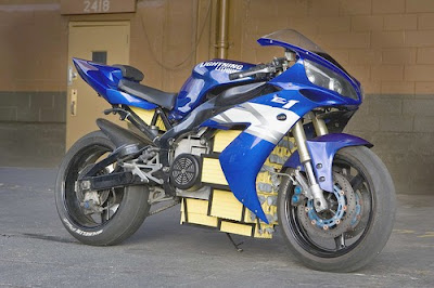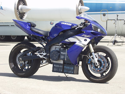 Es una Yamaha R1 impulsada por un enérgico motor trifásico de 60cv, capaz de catapultar la moto de Todd de 0 a 100km/h en unos 5 segundos alcanzando 160km/h de punta.