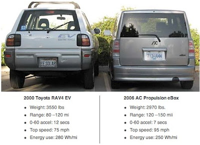 El eBox es una conversión del Toyota Scion xB, hecha por la compañía AC Propulsion. Como su nombre indica, la carrocería no es especialmente aerodinámica, sin embargo su rendimiento supera al SUV eléctrico creado por Toyota, el RAV4 EV.