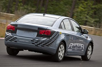 Las pruebas se están realizando siguiendo el estilo del Volt, esto es, montar el sistema híbrido/eléctrico en otra plataforma hasta que el diseño exterior esté totalmente rematado. Por el momento lo podemos ver alojado en el Chevrolet Cruze, como en su momento hemos visto al Volt. Según palabras del redactor la conducción del Ampera ha sido “sorprendente e impresionante”.