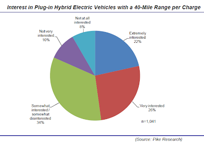 Según la encuesta un 49% de los entrevistados estarían dispuestos a pagar un sobre precio de entre un 5 y un 10% con respecto a un coche gasolina de similar segmento, un 17% pagaría entre un 20 y un 50% más, un 34% no estaría dispuesto a pagar un sobrecoste. Estas cifras dan un resultado medio que indica que el consumidor americano está dispuesto a pagar una media de un 12% más por disponer de autonomía eléctrica.