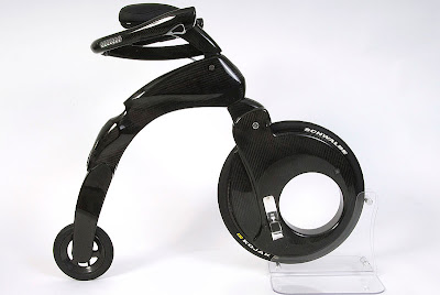 El cuerpo está fabricado con resistente y ligera fibra de carbono que le aporta un aspecto futurista y que le permite marcar solamente 10kg en la báscula. Es totalmente plegable, solamente necesitamos 15 segundos y la podremos llevar en una funda cuando lleguemos a nuestro destino. Es además una de las primeras motos eléctricas en montar un sistema anti bloqueo de frenos.
