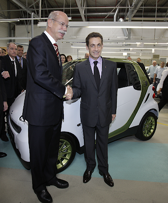 Gracias al decidido apoyo del ejecutivo de Nicolas Sarkozy el fabricante alemán Daimler ha decidido emplazar la cadena de montaje de la versión eléctrica del pequeño Smart en la ciudad de Hambach que tendrá una capacidad de unas 1,000 unidades mensuales. La producción comenzará en el 2012 y tendrán preferencia las entidades públicas y privadas que han colaborado en el desarrollo del proyecto teniendo los particulares que esperar su turno.