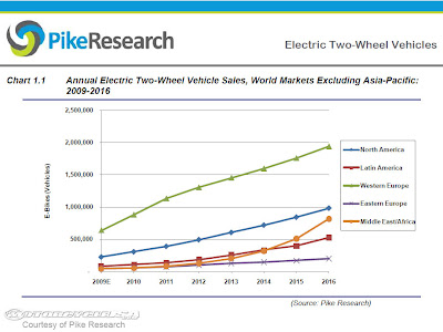 China será el principal mercado de las motos eléctricas, donde desde hace años que se vende más del 90% de la producción mundial. En Europa el incremento de ventas entre el periodo 2009-2016 se estima en un 17% , llegando a ocupar un impresionante 12% de mercado mundial para el mencionado 2016.
