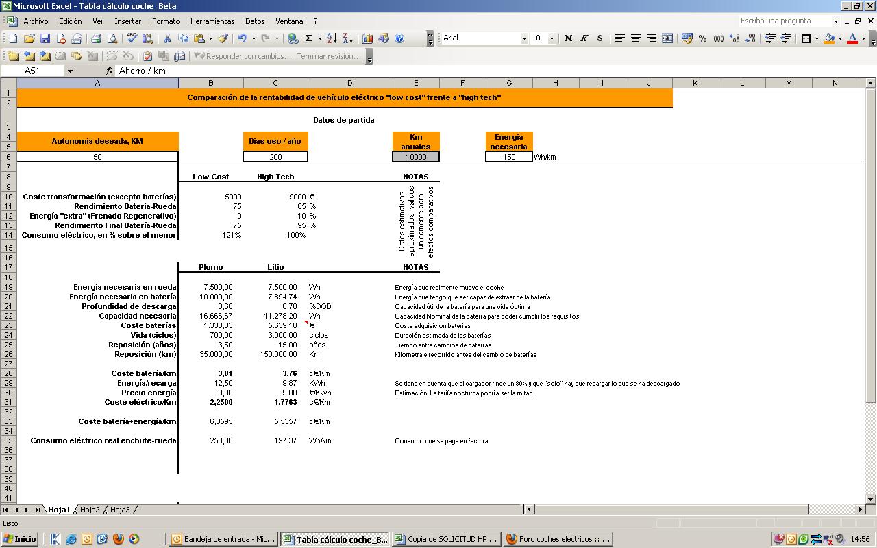 Nuestro amigo LuisM ha creado un interesantísimo tema en el foro que debe ser tratado en el blog, se trata del debate de si merece la pena realizar conversiones utilizando baterías de plomo o litio. Cada una tiene sus pros y sus contras para lo cual ha diseñado una hoja de cálculo con la que podemos ver las características de cada una, coste por km, prestaciones teóricas…