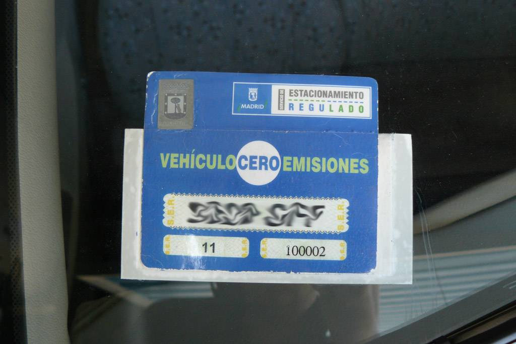 Pudimos comprobar que, mediante un trámite administrativo, es posible solicitar una tarjeta de exención de pago, en las plazas de aparcamiento público reguladas por el SER (Servicio de Estacionamiento Regulado) de Madrid, al tratarse de un vehículo libre de emisiones. Suponemos que también se puede solicitar una tarjeta equivalente en otras ciudades.