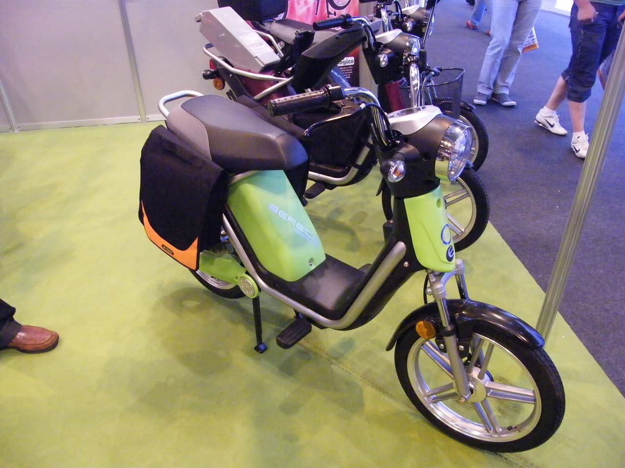 También hemos visto los modelos expuestos por el distribuidor Bereco, uno de los pioneros en el mundo de los scooters eléctricos. Estaban presentes modelos ya de sobra conocidos, como la Voltio, la Amperio, con un diseño más agresivo de lo que se aprecia en las fotos y la sorpresa, la pequeña E-Mo, un scooter de 1200w limitado a 50km/h y con una pequeña batería extraible.