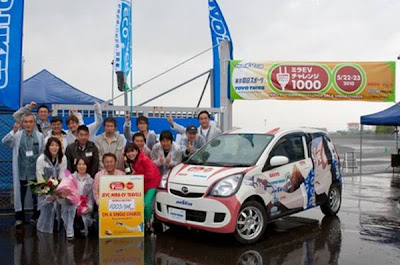 El vehículo utilizado es un pequeño y popular Daihatsu Mira al que han retirado su motor gasolina y lo han sustituido por uno eléctrico de 46cv perfecto para la faceta a la que lo han convertido y 26cv más potente que el utilizado en su anterior record.
