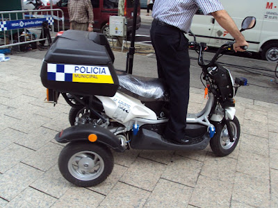 Este mismo representante exponía un par de sencillos scooters de la marca alemana Govers con trasmisión por correa dentada. El blanco tiene una batería extraible de 9kW a la que no le gustan las cuestas. Goelix, presentaba un par de ejemplares con un par de chicos que se controlaban perfectamente la tecnología. Por último, un triciclo casi artesanal tuneado para la poli con baterías extraibles (supongo).