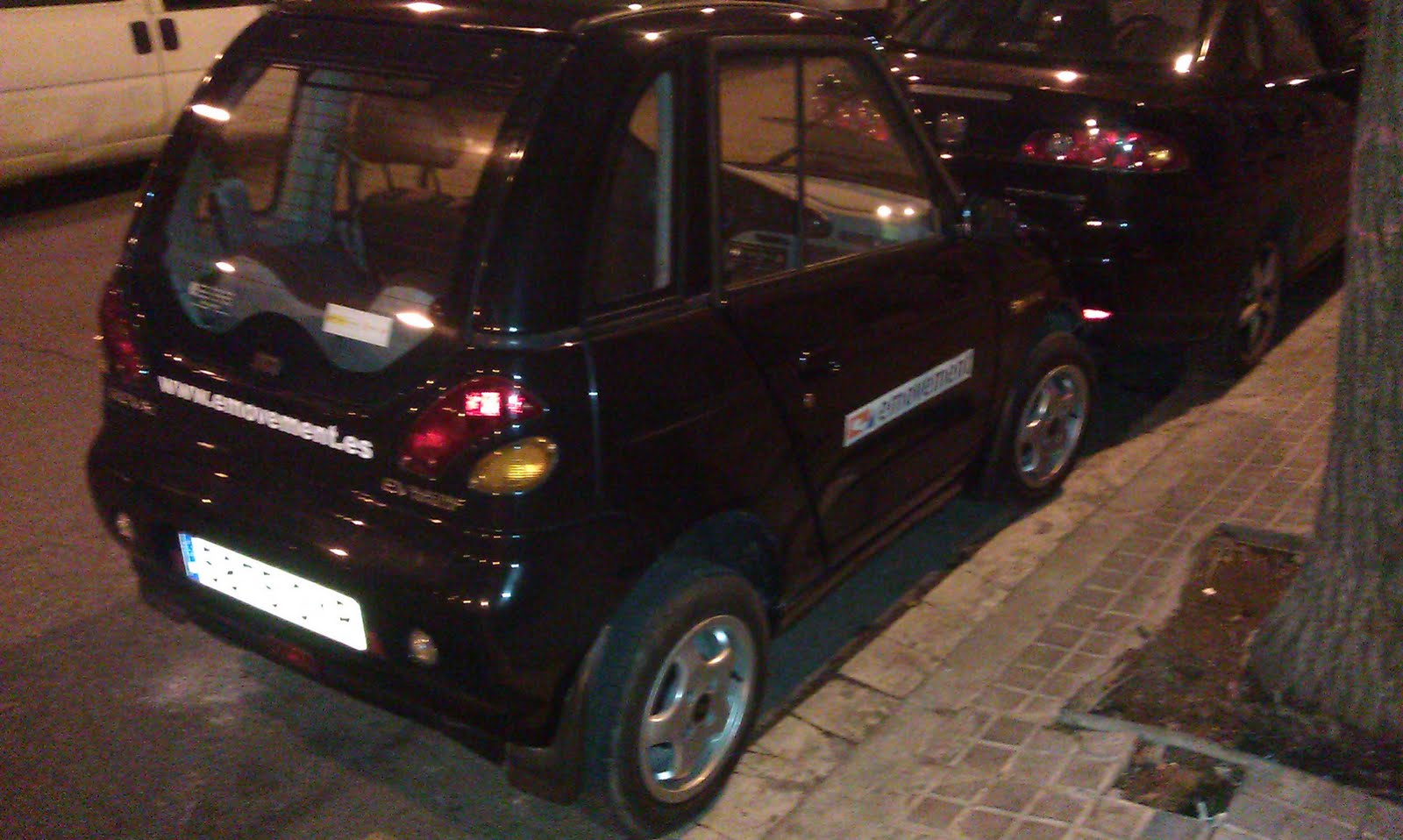 Por la tarde quedo con dos amigos que me ayudan con la última prueba, para despedirme del Reva-i: circular con 3 personas dentro. La operación parece complicada por la falta de espacio; con el asiento pasajero adelantado al máximo la persona de detrás cabía sin demasiado espacio libre, pero para sacar de un apuro sirve. Salimos de la rampa del párking sin mayor complicación, y una vez en llano, por ciudad, no parece que el peso extra de dos ocupantes aparte del conductor afecte demasiado al rendimiento del coche. Es una prueba verídica: el Reva-i puede llevar tres pasajeros si una situación lo llega a requerir.