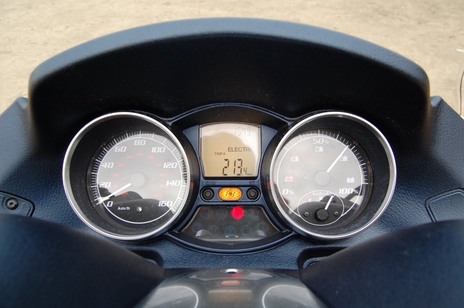 La parte térmica consta de un cuatro tiempos monocilíndrico de 278cc refrigerado por agua, alimentado por un sistema de inyección electrónica y cuya transmisión se basa en el tradicional variador por correa trapezoidal. Hasta ahí pocas innovaciones respecto a un scooter convencional. La parte eléctrica consta de un “brushless DC” (motor síncrono de imanes permanentes) cuya potencia máxima es de tan sólo 2,6kW. Éste va ubicado en el basculante y ataca la rueda mediante el grupo reductor final, compartiendo esta última desmultiplicación con el motor térmico. La batería es de ion-litio con una capacidad de 1,2kWh. La potencia máxima declarada, solapando ambos motores, es de 18,2kW (25CV).