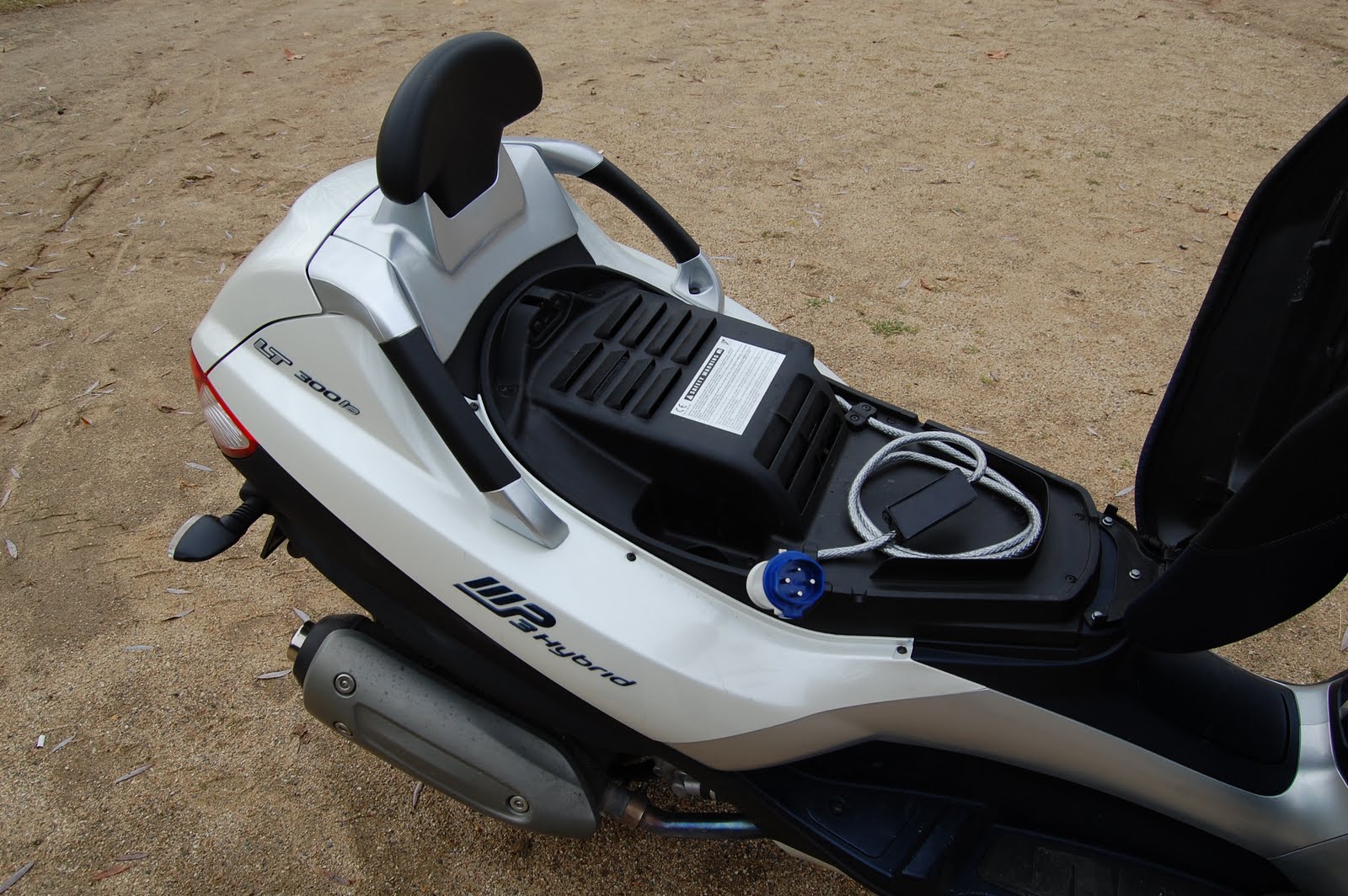 Para cambiar de modo basta con pulsar un botón ubicado en la piña derecha del manillar, se puede hacer sobre la marcha, aunque para pasar al modo “Electric” tienes que estar rodando por debajo de 40km/h y para “engranar” la marcha atrás, obviamente tienes que estar parado. En carretera lo lógico es usar el modo “Hybrid Charge”, ya que el motor eléctrico no aporta prácticamente nada, así que es la mejor ocasión para recargar la batería. Cuando vienen las curvas lentas y los desniveles (por ejemplo en carretera de montaña) o en ciudad, lo suyo es cambiar al modo “Hybrid Power” y disfrutar así de un mayor empuje, asociado también a un menor consumo de gasolina. La velocidad máxima, en llano, es de unos 120km/h sin que se aprecien grandes diferencias entre un modo híbrido y otro.