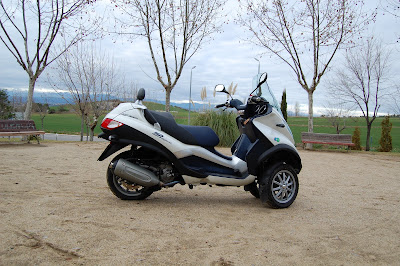Una de sus ventajas es que se puede conducir con carnet de coche, a pesar de que excede los 125cc y los 11kW reglamentarios para la convalidación. De hecho, tampoco se considera un “triciclo de motor” o “motocicleta con doble rueda gemela” porque supera los 15kW admisibles en esa categoría. Para poder conducirlo con carnet B, sin limitaciones de cilindrada ni antigüedad (como los quads), Piaggio ha adaptado el MP3 a las exigencias de homologación que permiten catalogarlo como “vehículo de tres ruedas con manillar”. Para esto han tenido que reposicionar los intermitentes, aumentar un poco el ancho de vía e incorporar un pedal de freno, entre otros detalles.