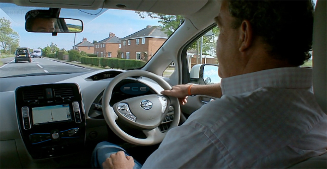 Pero el primer problema llega con el precio, atribuyendo una cifra de 35.500 euros para el Leaf, seguido con el comentario “casi el doble que un coche de su tamaño” algo injusto ya que a pesar de ser bastante más caro que un coche de su categoría, tendríamos que aplicar los 5.600 euros de descuento en Inglaterra, e igualar el equipamiento, lo que supondría aumentar de forma considerable el precio del supuesto competidor, que el Sr Clarkson posteriormente materializa en un Golf.