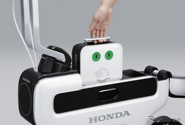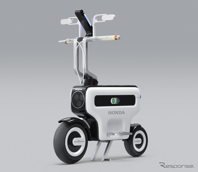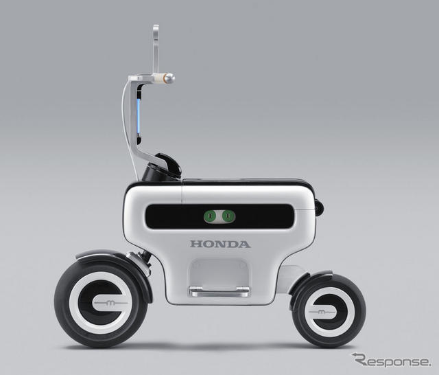 Su tamaño es realmente compacto, solamente un metro de alto, y entre las pocas características que se han filtrado, sabemos que dispondrá de una batería extraible, lo que nos permitirá llevarnos la batería y recargarla allá a donde vayamos. También sabemos que Honda optará por un sistema de motor en rueda que impulsará desde la delantera y que curiosamente dispone de una medida diferente a la trasera.