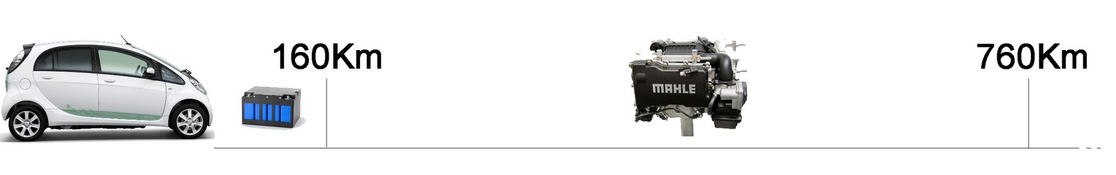De todos es sabido que lo que adolece hoy en día al vehículo eléctrico es su baja autonomía y el elevado precio de sus baterías. Mientras que la investigación no permita solventar estos problemas, se nos presenta la posibilidad de instalar un extensor de autonomía que nos permite poder aumentar la misma, de un i-Miev para el ejemplo, en 500-600 Km. Sus medidas son poco más grandes que un equipaje de mano de avión: 481 x 416 x 327 mm. Naturalmente, hablamos de valores teóricos, aunque eso sí, con la tranquilidad de poder repostar el extensor cuando vacíe su depósito de combustible.