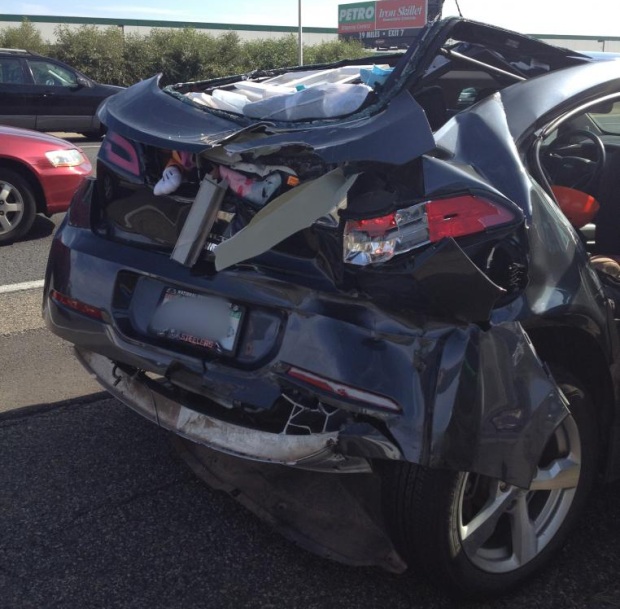 La pasada ha sido una semana movida en cuanto a seguridad respecto al Volt, primero con la noticia de que una de las unidades utilizadas por la agencia de tráfico de los Estados Unidos había comenzado a arder tres meses después de ser sometida a un crash test y posteriormente hemos conocido un incendio en un garaje donde estaba aparcado un Volt. Para rematar una mala semana de noticias nos llega el primer accidente conocido de este modelo, un percance que se ha saldado sin daños personales y que ha demostrado que a pesar de ser eléctrico, las medidas de seguridad activas y pasivas han mantenido a sus ocupantes en perfecto estado.