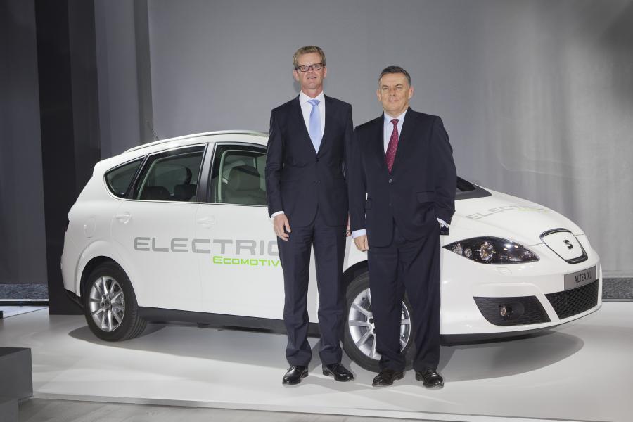 Ha sido toda una sorpresa la presentación ayer del primero coche eléctrico desarrollado por la filial del grupo Volkswagen SEAT. Se trata de una conversión del Altea Electric Ecomotive, que se ha unido al Leon Twindrive que desde hace algún tiempo lleva en desarrollo y siendo paseado para mostrar que el grupo alemán no se ha parado en sus investigaciones en electromovilidad. Según James Muir, presidente de SEAT, durante el periodo 2011-2015 la marca invertirá un total de 1.000 millones en I+D, aunque no ha especificado cuanta de esta cantidad estará destinada a su programa de coches eléctricos.