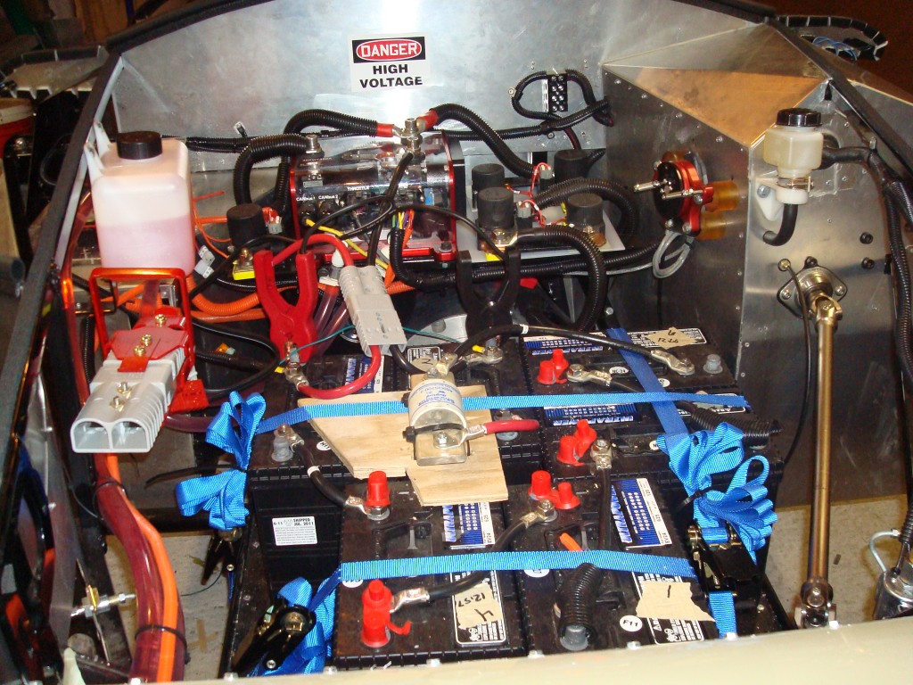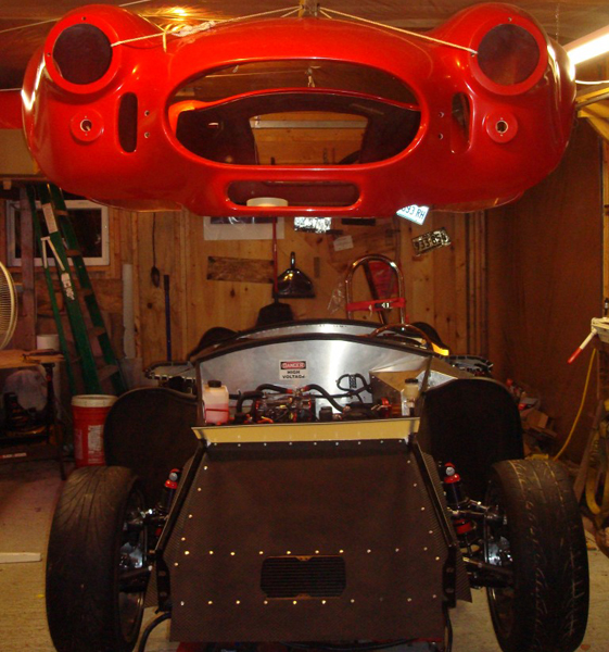 Usando su garaje como base de operaciones, un kit eléctrico de Factory Five y sin experiencia mecánica, Wayne Krauth, ha utilizado el cuerpo de un Cobra de 1965 para realizar una llamativa conversión, una cuerpo formado por una estructura de acero de cuatro pulgadas a la que incluso se le han mantenido los fallos de producción del modelo original, como uno de los guardabarros traseros que es más alto que el otro, además de algunos problemas de alineación fruto de una producción artesanal, pero no demasiado precisa.