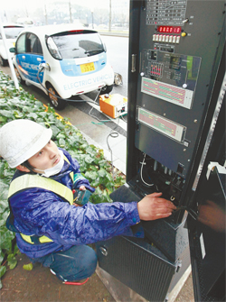 Gracias a los 16 kWh de su batería, el Mitsubishi i-Miev es capaz de proporcionar suficiente energía para un conjunto de 12 semáforos durante dos horas, lo que permite a la compañía dedicada al mantenimiento, poder realizar las labores de reparación en las instalaciones de la zona sin necesidad de acudir a los ruidosos y pesados generadores gasolina.
