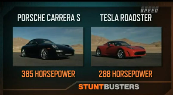En la primera prueba podemos ver enfrentados a un Tesla Roadster, de 288 CV de potencia, contra todo un Porsche Carrera S de 385 CV de potencia, 97 CV más para el alemán que tendrá que luchar contra la entrega de par del eléctrico.