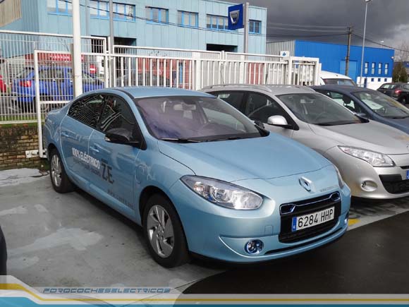 El Fluence es un coche bonito, una berlina lustrosa en un color azul precioso y decorado con las pegatinas del concesionario, por lo que se supone que será un modelo de prueba. A su lado, una Kangoo ZE en color blanco corporativo que seguro llamará poderosamente la atención en esta zona industrial.