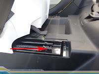A la derecha del salpicadero encontramos una llamativa cerradura que nos indica que en la zona hay un espacio donde guardar objetos, y efectivamente, unos centímetros encima nos encontramos con un hueco pensado para dejar nuestra documentación…y nada más, ya que su tamaño apenas deja espacio para nada más.