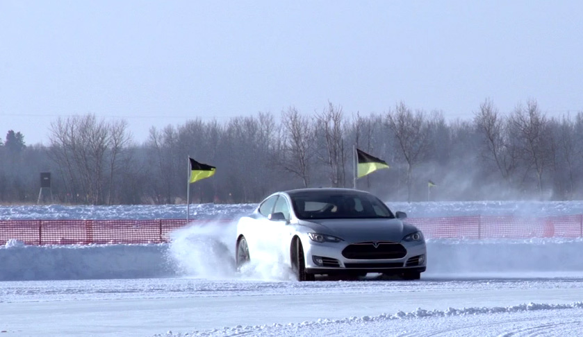 Slaloms entre conos, cambios de dirección bruscas y una circulación en círculo sobre una superficie helada, nos demuestra que incluso en las peores condiciones, el Model S está listo para lidiar con cualquier situación, aunque nos quedamos con las ganas de saber como afecta el frío a la autonomía de este modelo.