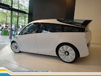 El primero que vemos nada más entrar es el FT-Bh, un prototipo híbrido enchufable que destaca por un aspecto totalmente conceptual y un diseño totalmente centrado en la aerodinámica, con un frontal agresivo, pero una parte trasera con un aspecto de maqueta.