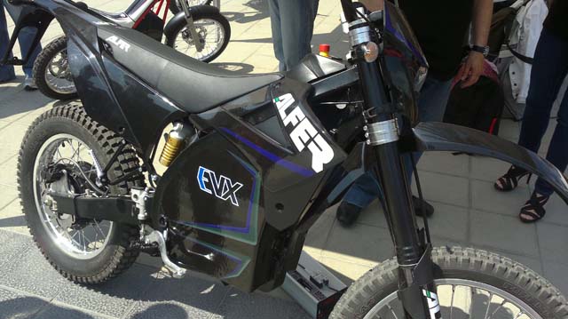 El primer modelo es la ALFER EVX Trail Supermotard con un motor de 10 KW (13.6 CV) que puede ser conducida con carné de coche. Dispone de un motor en la rueda trasera, y elementos fundamentales como el freno regenerativo, capaz de recuperar hasta un 15% de la energía perdida, marcha atrás, que nos facilitará las maniobras, y además gracias al controlador y motor programable, podremos adaptar la respuesta de la moto a nuestras necesidades.