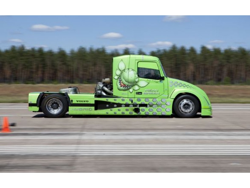 Este Volvo se ha convertido en el camión más rápido del planeta, logrando una marca a la altura de los grande deportivos, alcanzando nada menos que 236.5 km/h, una cifra impresionante que ha logrado con un poco de ayuda.