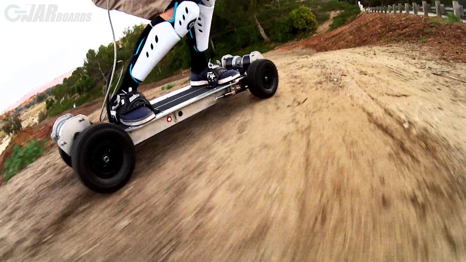 Entre las principales diferencias respecto a otros patinetes, además de una potencia demencial, encontramos la ausencia de un manillar, y el control de la velocidad la realizaremos mediante un dispositivo en nuestra mano conectado por cable, lo que nos permite aumentar la libertad de movimientos. Además de en el asfalto, el Greased Lightning tiene versión para circular en caminos de tierra gracias a unas ruedas más grandes, y que nos permitirá aventurarnos por caminos de tierra en una experiencia más extrema.