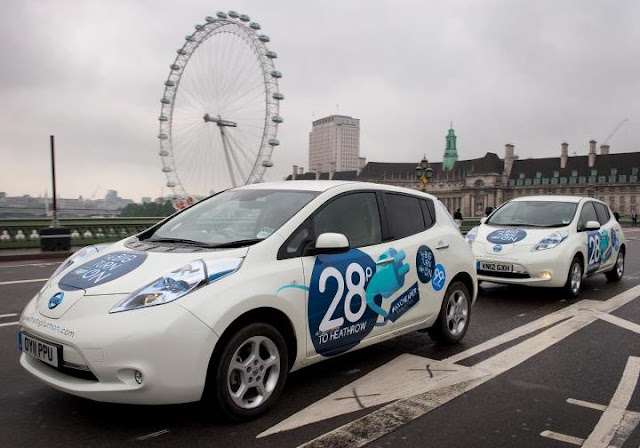 Una de las primeras ciudades en ver en acción a la flota de Leaf ha sido Londres, donde con un simple mensaje en twitter podremos obtener un viaje al aeropuerto de Heathrow completamente gratis a bordo del Nissan Leaf, un recorrido que según el fabricante japonés resulta seis veces más económico con un coche eléctrico que con uno con motor de combustión.