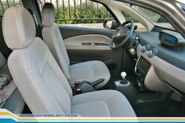 El motor y la tracción son delanteros. No dispone de aire acondicionado, y como curiosidad lleva un botón (azul) para comunicarse directamente con Autolib. Además dispone de toma 12V, USB, y un par de botones que desconozco, uno lleva pintado un volante y el otro una llave. La información del funcionamiento del vehículo se puede personalizar gracias a un menú que permite elegir idioma, datos que mostrar en pantalla y unidades de medida. Este menú solo controla los datos del vehículo, porque el navegador siempre habla francés.
