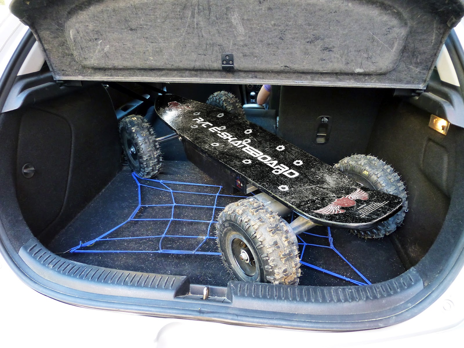 Este modelo en cuestión, monta 3 baterías en serie de 12V – 12Ah, motor de 800 W y es capaz de alcanzar unos 30 km/h en apenas 5 segundos. El cargador es externo y se necesitan 4 horas para una recarga completa. La transmisión es por correa dentada y va encapsulada para una mayor duración. El peso total del aparato es de unos 29 Kg, un tanto elevado comparado con uno normal, aunque poco perceptible en marcha. Tan sencillo como encender el control remoto y el skate, y estás listo para correr.