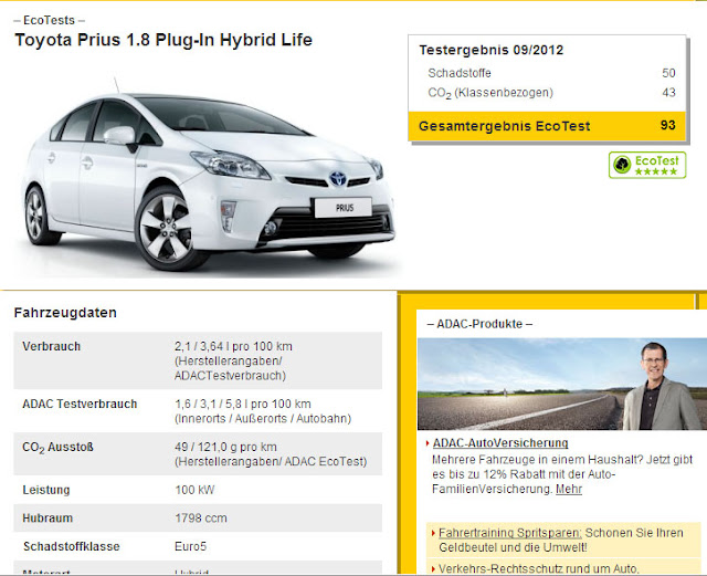 De esta forma el Prius enchufable sólo queda en cuanto a eficiencia por detrás de los coches eléctricos puros, como el Renault Fluence ZE, logrando según el ADAC una cifra de emisiones de 121 gramos por kilómetros, por los 49 gramos que declara el fabricante.