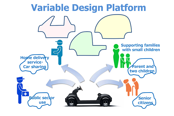 El Honda Micro Commuter más que un modelo de producción es una plataforma que podrá tener múltiples usos, con una base donde está alojada la batería y el sistema eléctrico, y un cuerpo que puede ser configurado de diferentes formas para dar lugar a un vehículo de transporte personal o como vehículo para empresas de reparto o de correos.