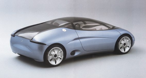 La puertas se abrían solas y el acceso era mediante tarjeta magnética, pudiendo abrir una o las dos puertas o el maletero en función de cómo se insertara la tarjeta. El interior es desde luego muy futurista, como buen prototipo que se precie. Un único par de asientos fijos envolventes que se funden en continuidad con el resto del interior y la consola central. Son los pedales y el volante los que se ajustan al conductor y no al revés. El asiento del copiloto está ligeramente retrasado para no entorpecer la visibilidad del piloto.