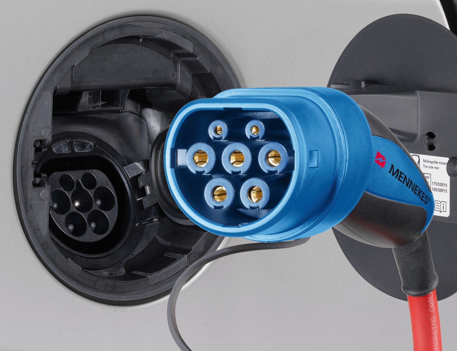 Mennekes es en realidad el nombre de la empresa que diseñó y construyó el conector VDE-AR-E 2623-2-2, pero en vez de buscar al que le puso el nombre al conector y pegarle una paliza, lo llamaremos simplemente conector Mennekes. Es una variación específica para coches eléctricos de los conectores IEC 60309, segun IEC 62196 es el conector de tipo 2 y pensado para el modo 3 de recarga, muy parecido en distribución de pines y forma básica al SAE J1772. Permite desde cargas monofásicas a 16A hasta trifásicas a 63 A, o lo que es lo mismo, desde 3,7 kW a 43,5 kW de potencia. Como veis es muy versátil pero sin embargo no permite todas las modalidades de carga en el modo 3 y se le ha criticado su precio excesivo comparado con otros como el Scame. Es el formato apoyado por Alemania.