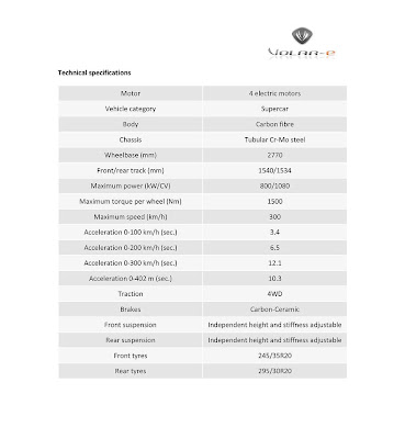 Los encargados de probar la primera unidad serán los pilotos Antonio Zanini y la campeona motociclista Laia Sanz, que tendrán el privilegio de ser los primeros en poder sentir las sensaciones de conducir un coche dotado de cuatro motores eléctricos de 200 kW cada uno, para un total de 1.086 CV, con un demoledor par motor de 6.000Nm, que le permite alcanzar los 100 km/h en 3.5 segundos, una cifra que siendo impresionante, esperábamos que fuese algo mejor dada la potencia y el par motor.