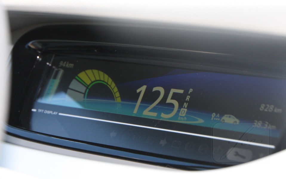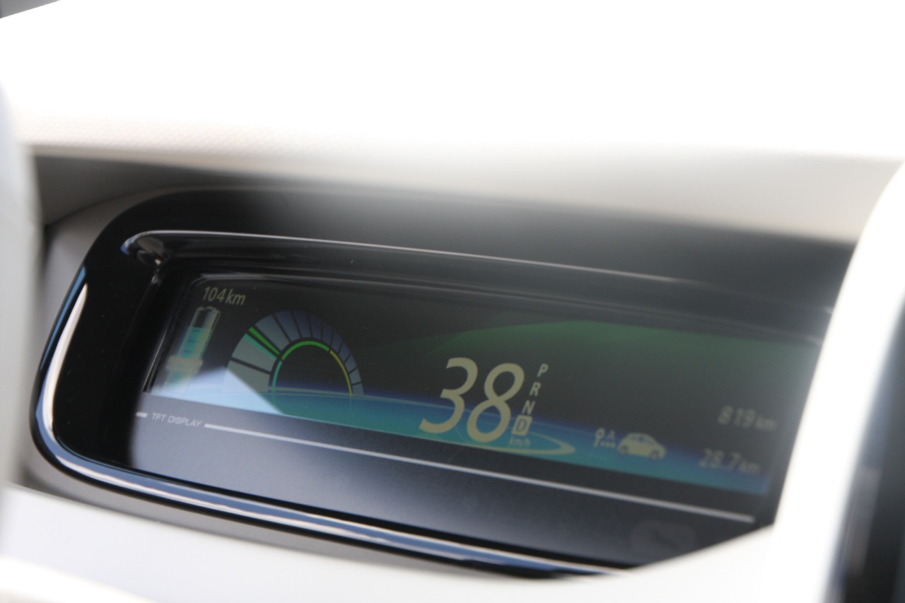 Por empezar con suavidad activé el modo ECO, situado junto a la palanca de selección de marchas que es prácticamente idéntica a la de un coche automático, con P,R,N y D, de más arriba a más abajo. La palabra ECO aparece en el display principal y el color del fondo cambia a verde. La palanca tiene bajo el pomo un gatillo para permitir el cambio y seleccioné la opción D. Solté freno de mano y aceleré suavemente. Y el coche respondió con absoluta suavidad, sin tirones, y en absoluto silencio. Un momento francamente especial que esperaba con ansia.
