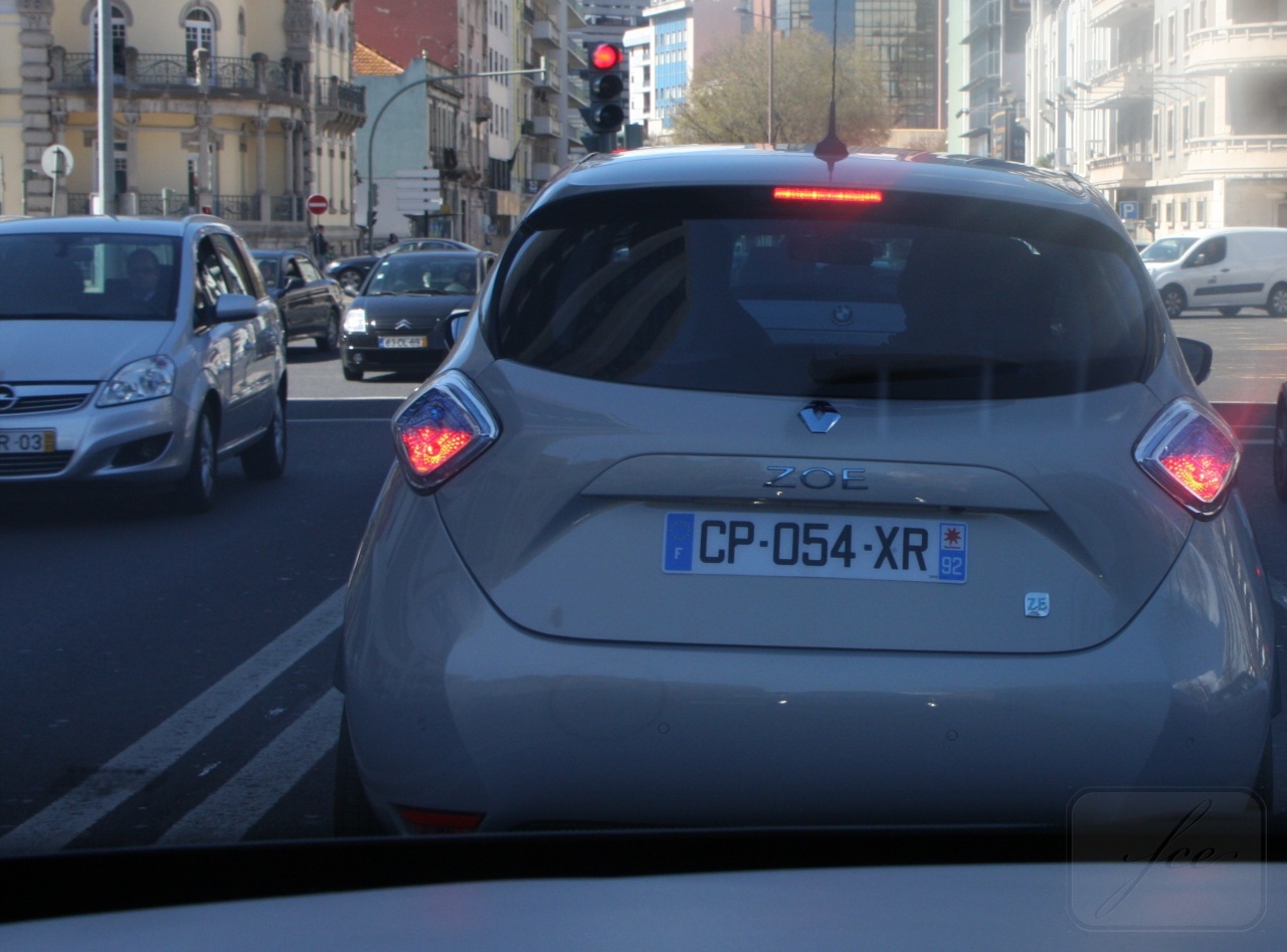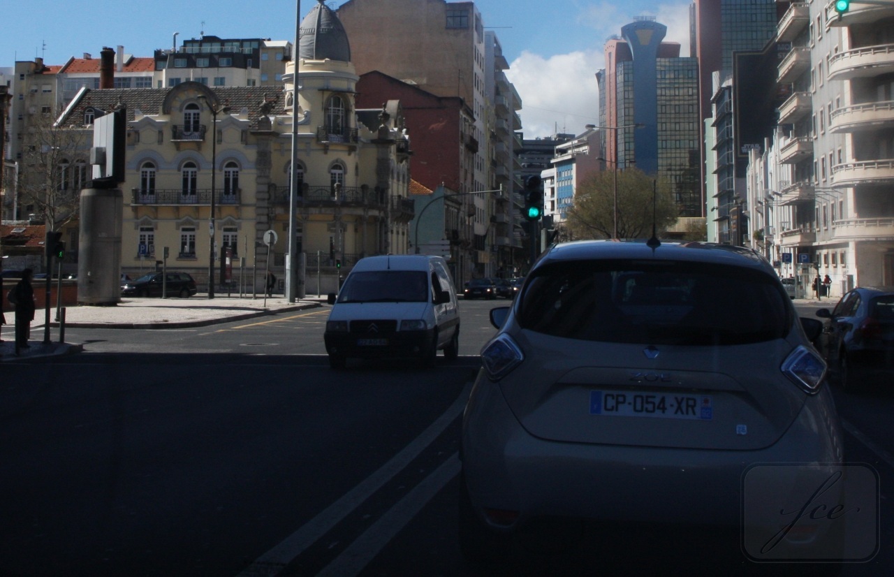 Ya con algo más de rodaje en el coche y sintiéndome cada vez más confiado al conocer como reaccionaba a diferentes velocidades conduje de forma algo más relajada, disfrutando de las calles de Lisboa y de las miradas curiosas de peatones y otros conductores que claramente nos contemplaban gesticulando y mirando el coche o comentándolo con sus acompañantes. Era más acusado cuando nos juntábamos dos o tres ZOEs en el mismo semáforo, cosa habitual al principio del trayecto.