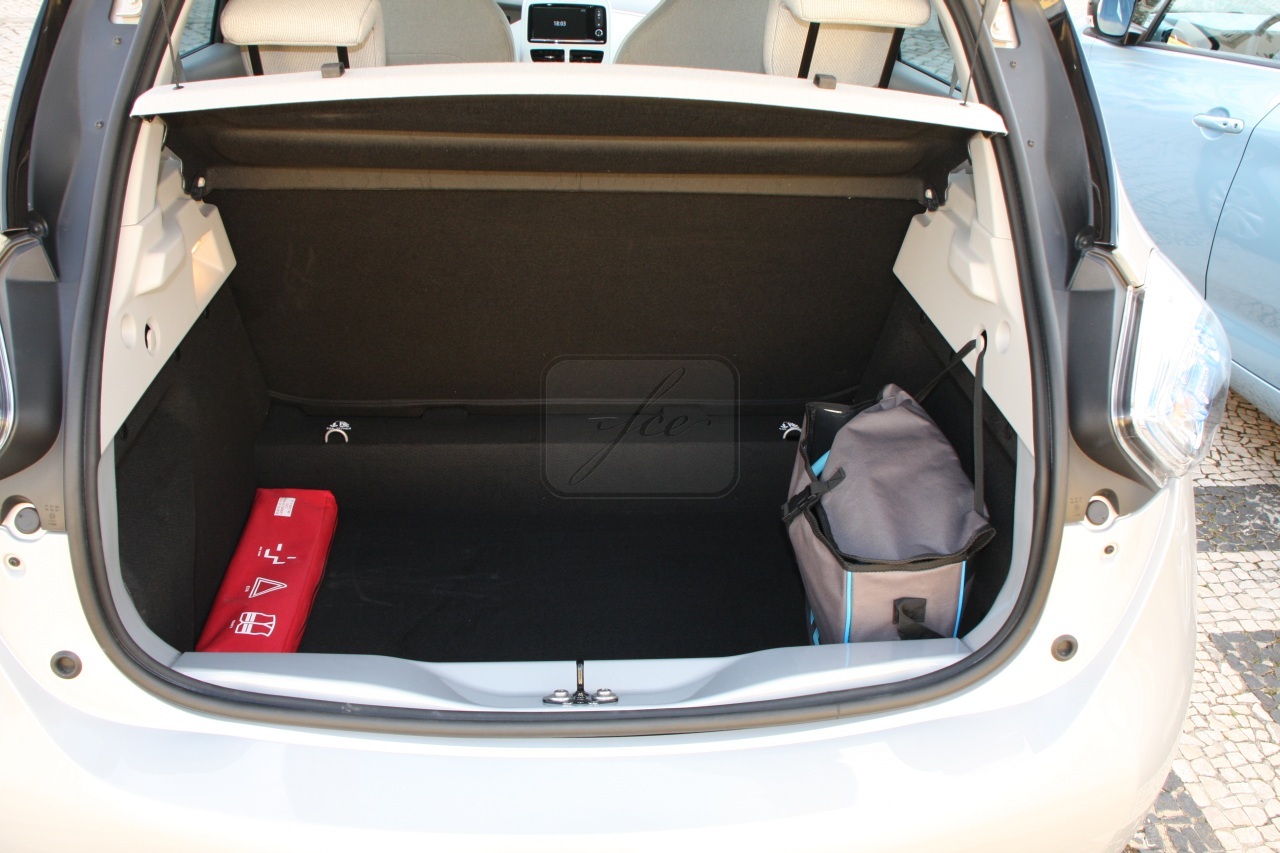 Abrimos el maletero y enseguida habíamos cargado nuestras mochilas y bolsas. No había tiempo para fotos ni vídeos y la luz ambiental tampoco invitaba a ello. Se imponía conducirlo cuanto antes y con la generosidad de mi colega fui yo quien se puso al volante. Ajusté bastante atrás el asiento y ni me moleste en intentar ajustarlo en altura, ya sabía que no se podía a causa de las baterías en el suelo. De hecho el Renault ZOE es 13 centímetros más alto que el Clio a causa de éstas. Para mi sorpresa me sobraba espacio. No solo no necesitaba echar el asiento hasta atrás del todo sino que además por encima de mi cabeza había hueco más que de sobra.