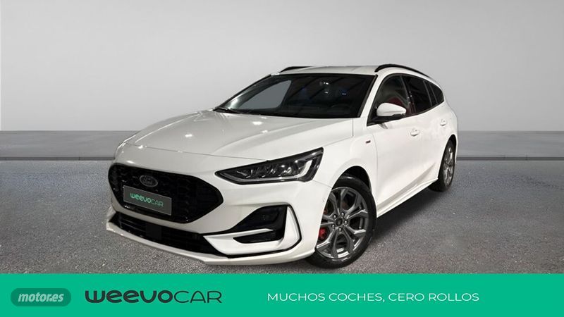 Bienvenido a WeevoCar, ¡Muchos coches, cero rollos! En WeevoCar creemos que comprar o vender un coche de ocasión debería ser fácil, transparente y sin complicaciones. Por eso reinventamos la experiencia: coches de calidad, precios claros y un equipo que te lo pone fácil desde el primer clic. · Financiación a tu medida: Elige la opción que mejor se adapte a ti. Diseñamos planes flexibles para que estrenes coche sin preocupaciones. · Vehículos certificados Todos nuestros coches pasan un control de 100 puntos en nuestros talleres oficiales. Calidad verificada, confianza garantizada. · Garantía mínima de 12 meses Con posibilidad de ampliación para que conduzcas con total tranquilidad. · Entrega donde quieras Llevamos tu coche a cualquier punto de la península por 350 € (IVA incluido). Y si estás en Baleares o quieres enviar tu coche allí: 550 € (IVA incluido). Recogida gratuita en instalación. · Valoramos tu coche a cambio Te damos la mejor tasación del mercado, rápida y sin compromiso. · Precio TODO INCLUIDO Sin sorpresas: IVA y transferencia ya incluidos en el precio final. Y para que no tengas que preocuparte por nada, te gestionamos también el seguro del vehículo en el momento de la compra. Contacta con nosotros a través del formulario web y uno de nuestros asesores te atenderá de forma personalizada. El vehículo ofertado puede no encontrarse físicamente en la ubicación del anuncio. La oferta es válida salvo error tipográfico en el precio o en la ficha. Imágenes no contractuales. ***EQUIPAMIENTO OPCIONAL INCLUIDO*** - Rueda de repuesto mini - Pintura sólida Blanca - Ice Pack 70: SYNC 4 - Cristales privacidad - Botón E-Call (sistema llamada emergencia) - Paquete Tecnológico - Paquete Parking - Paquete diseño ST-Line ***EQUIPAMIENTO SERIE INCLUIDO*** - Cinco plazas ( 2+3 ) - Seis altavoces - Equipo de audio con radio AM/FM. radio digital y pantalla táctil pantalla a color - Control remoto de audio en el volante - Toma/s de 12v en la zona de carga y los asientos delanteros - Cuatro frenos de disco siendo dos ventilados - ABS - Control de crucero - Espejo de cortesía iluminado en conductor en acompañante - Sensores de aparcamiento delanteros y traseros con sensor - Combustible: sin plomo 95 octanos y Combustible primario: gasolina - Acabados de lujo: pomo de la palanca de cambios en aluminio y cuero. consola central en símil aluminio y tablero en símil aluminio - Alfombrillas - Faros con lente de superficie compleja. bombilla halógena y luz larga con bombilla halógena - Regulación de los faros con ajuste de altura manual y sensor de oscuridad - Luces antiniebla delanteras - Luces laterales maniobras/de bordillo - Encendido diurno automático - Airbag lateral de cortina delantero y trasero - Bandeja trasera rígida - Sujeción de carga - Cierre centralizado con apertura por tarjeta/llave inteligente y contról de los elevalunas - Portaequipajes longitudinal en el techo - Airbag frontal del conductor. airbag frontal del acompañante desconectable - Airbags laterales delanteros - Dos reposacabezas en asientos delanteros ajustables en altura. tres reposacabezas en asientos traseros ajustables en altura - Cinturón de seguridad delantero en asiento conductor. acompañante y ajustable en altura con pretensores - Cinturón de seguridad trasero en lado conductor. cinturón de seguridad trasero en lado acompañante. cinturón de seguridad trasero en asiento central de 3 puntos - Asientos de tela (material principal) y de tela (material secundario) - Apoyabrazos central delantero - Asiento delantero del conductor deportivo. ajuste longitudinal manual y ajuste manual en altura con ajuste manual del respaldo. asiento delantero del acompañante deportivo y ajuste longitudinal manual con ajuste manual del respaldo - Asientos traseros de tres plazas de tipo banco de orientación delantera con banqueta fija y respaldo abatible asimétrico - Volante multi-función revestido de cuero ajustable en altura y en profundidad - Dirección asistida eléctrica con endurecimiento progresivo s/velocidad - Sujetavasos en los asientos delanteros - Sistema de ventilación con filtro de pólen y filtro de carbón activo calefacción del motor - Controles de climatización diferenciados digitales para conductor/acompañante - Aire acondicionado bizona de automático - Limpiaparabrisas delantero con sensor de lluvia - Elevalunas eléctricos delanteros y traseros con dos de ellos de un solo toque - Lavaparabrisas calefactable - Navegador con datos vía internet y pantalla a color de 13.20 " con información en 3D y con voz. control mediante pantalla táctil y información de tráfico 33.5 y 36 - Sistema de servofreno de emergencia - Indicador de baja presion de los neumáticos con sensor Montado en la llanta - Preparación Isofix - Tarjeta / llave inteligente con entrada sin llave. arranque sin llave y ajustes programables - Sistema activacion por voz otro - Freno mano electrónico - Filtro de partículas - Resultado de pruebas de impacto Euro NCAP :. puntuación global: 5.0. protección adultos: 96.0. protección niños: 87.0. protección peatones: 72.0. puntuación ayudas a la seguridad: 75.0. Versión evaluada: Ford Focus 1.0Trend 5-door HA LHD y Fecha del test: 04 sep 2019 - Control de arranque en pendiente - Encendido automático luces emergencia - Sistema de alarma de colisión: activa las luces de freno con asistencia de frenado. sistema antiatropello peatones/ciclistas y frenado a baja velocidad de 5 Km/h como mínimo aviso visual/ acústico. funciona por encima de 50 km/h / 30 mph y funciona por debajo de 50 km/h / 30 mph - Bluetooth - Start/Stop parada y arranque automático - Alerta de cambio de carril: activa la dirección - Control de estabilidad del remolque - Conexión para: USB delantero. 2. 0 y 0 - Botón de arranque del vehículo - Limitador de velocidad - Luces frontales antiniebla y Luces de día con tecnología LED - Recuperación de la energía - Hibrido 