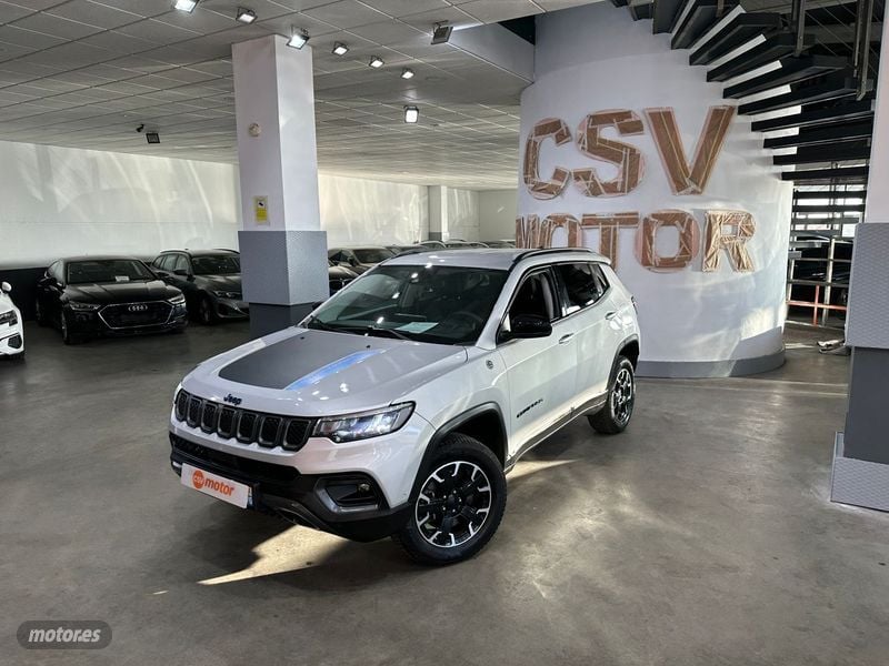 ES EL MODELO 1.3PHEV 240CV 4XE TRAILHAWK Financiación SIN entrada. Admitimos tu coche a cambio, Y TE LO SOBREVALORAMOS, aunque sea muy viejo. ¿Quieres comprar online? Contáctanos y te daremos todo lo que necesites para decidirte: Teleperitación, certificados, etc. así como la financiación, que sólo con tu nómina te confirmamos en minutos la concesión de la financiación POR EL TOTAL y sin entrada. Nuestros precios son totalmente fijos y sin sorpresas por financiación abusiva. Este vehículo está disponible para su venta en la ubicación que ves en este anuncio. Así también habrá la posibilidad del envío a domicilio, en cualquiera de las siguientes provincias desde 90€: La Coruña Álava Albacete Alicante Almería Asturias Ávila Badajoz Barcelona Burgos Cáceres Cádiz Cantabria Castellón Ciudad Real Córdoba Cuenca Girona Granada Guadalajara Gipuzkoa Huelva Huesca Jaén La Rioja León Lérida Lugo Madrid Málaga Murcia Navarra Ourense Palencia Pontevedra Salamanca Segovia Sevilla Soria Tarragona Teruel Toledo Valencia Valladolid Vizcaya Zamora Zaragoza. El precio indicado es con GARANTIA DE UN AÑO ampliable hasta TRES AÑOS. SEGUNDO AÑO GRATIS FINANCIANDO CON NOSOTROS. El vehículo tiene IVA INCLUIDO y desgravable si eres empresa o autónomo. Garantizamos por CONTRATO kilometraje real y que no ha tenido ningún golpe estructural. INFORMACIÓN PARA PARTICULARES: Te ahorras HASTA EL 11% que deberías pagar a hacienda si comprases a un particular en impuestos. En nuestra web dispone de más información sobre todos nuestros vehículos, así como más posibilidades para contactar con nosotros directamente: www.csvmotor.net Los extras del vehículo que usted está viendo son: VEHÍCULO HÍBRIDO ENCHUFABLE CON ETIQUETA CERO Y AUTONOMÍA ELÉCTRICA DE MÁS DE 50 KM, CAMBIO AUTOMÁTICO-SECUENCIAL, TRACCIÓN INTEGRAL 4XE, ASIENTOS DEPORTIVOS CON TAPICERÍA DE CUERO MIXTO, SISTEMA DE NAVEGACIÓN UCONNECT CON PANTALLA DE 10,1” (950€), APPLE CARPLAY & ANDROID AUTO, CÁMARA TRASERA, SENSORES DE APARCAMIENTO DELANTEROS Y TRASEROS, FAROS FULL LED, LLANTAS DE ALEACIÓN DE 17” TRAILHAWK (500€), CONTROL DE VELOCIDAD, AVISO DE ÁNGULO MUERTO, AVISO DE CAMBIO DE CARRIL ACTIVO, SISTEMA DE FRENADO DE EMERGENCIA, VOLANTE MULTIFUNCIÓN EN CUERO CON LEVAS, CLIMATIZADOR AUTOMÁTICO BIZONA (400€), DRIVE MODE SELECT CON MODOS OFF-ROAD, SELECT TERRAIN (AUTO, SPORT, SNOW, SAND/MUD, ROCK), PINTURA METALIZADA (800€),CRISTALES TRASEROS PRIVACY, ETC.TOTAL PRECIO VEHÍCULO NUEVO CON ESTA CONFIGURACIÓN: 48.000€. INFORME DE INGENIERO EXTERNO PARA GARANTIZAR KILOMETRAJE Y ESTADO.SE ENTREGARÁ CON LA ÚLTIMA MATRÍCULA EMITIDA POR LA DGT. Este anuncio no es vinculante, puede contener errores.