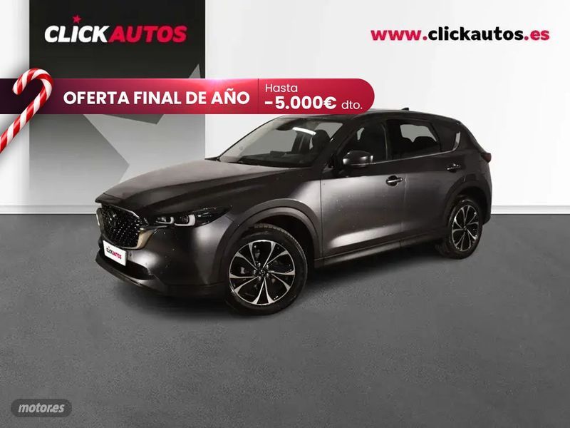 Acabado MHEV Exclusive line. Disponible también en los colores Machine gray, Rhodium White, Soul red crystal. También en Península y Baleares. Este anuncio es meramente informativo, no es vinculante ni contractual. Consulta a nuestros comerciales. Más de 2000 coches en stock permanente, visítenos en ClickAutos. - Sistema Mazda Connect con pantalla de 10 - 25” Head-Up Display de proyección en parabrisas Android Auto y Apple CarPlay inalámbricos Sistema de Navegación Sensor de parking delantero y trasero Climatizador automático bizona Retrovisores exteriores plegables eléctricamente - calefactados Monitor de visión 360º Portón trasero eléctrico Faros Smart Full LED Acceso inteligente sin llave Sistema de Sonido Bose con 10 altavoces Asistente de tráfico y crucero