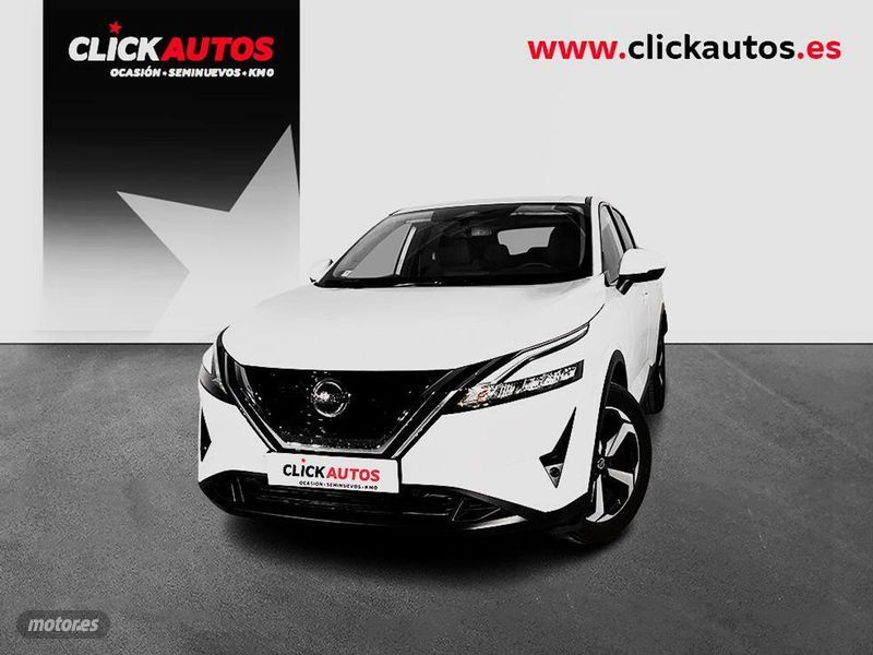Acabado MHEV N-Connecta Xtronic. Disponible también en los colores White solido. También en Península y Baleares. Este anuncio es meramente informativo, no es vinculante ni contractual. Consulta a nuestros comerciales. Más de 2000 coches en stock permanente, visítenos en ClickAutos. - Alarma antirrobo perimetral Sistema de llamada de emergencia automática (E-CALL) Sistema automático de frenada predictiva de emergencia con detección de peatones y ciclistas Sistema de aviso de salida de carril Asiento del conductor reclinable y regulable en altura con ajuste lumbar electrónico Climatizador automático dual Espejo retrovisor interior antideslumbrante automático Levas para el accionamiento del cambio automático (CVT) situadas en el volante Llantas de aleación SENREN con corte diamantado de 46 cm (18") Faros delanteros y traseros Full LED Luz diurna de conducción LED Espejos retrovisores exteriores abatibles eléctricamente y calefactados Panel de instrumentación totalmente digital Full TFT de 31 cm (12 - 3") Pantalla de infoentretenimiento Nissan Connect de alta definición de 23 cm (9"): Apple Carplay© inalámbrico y Android Auto©; Navegación por mapas Tom Tom; Actualización remota de mapas de navegación - Asistente de Amazon Alexa y Google Assist Sistema de conexión WIFI para dispositivos Cargador inalámbrico de smartphone Activación automática de las luces Sensor de lluvia automático Sensores de aparcamiento delanteros y traseros Cámara de aparcamiento de visión 360º con detección de objetos en movimiento Radio digital DAB Sistema de sonido de 6 altavoces Llave inteligente (apertura sin llave) Botón de encendido del motor Selector de modos de conducción (Eco - Normal - Sport) Tomas Tipo USB-A y USB-C en las plazas delanteras y traseras Freno de estacionamiento eléctrico + Asistente arranque en pendiente/Auto-hold Fijaciones ISOFIX en las plazas traseras Monitorización de la presión de los neumáticos Advertencia de colisión frontal predictiva Control de crucero inteligente con velocidad adaptada a las señales de tráfico Señal de parada de emergencia (Autohazard)
