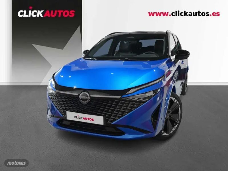 Acabado N-Design. Disponible también en los colores Magnetic blue, Kori white. También en Península y Baleares. Este anuncio es meramente informativo, no es vinculante ni contractual. Consulta a nuestros comerciales. Más de 2000 coches en stock permanente, visítenos en ClickAutos. - Pantalla de infoentretenimiento HD 12 - 3" con Nissan Connect Services Apple CarPlay® inalámbrico/Android Auto™ inalámbrico Conectividad con ecosistema Google® Navegador con Google Maps: Búsqueda - Información meteorológica - Mapas en 3D y Google Street View Cámara de visión trasera Sensores de parking delanteros y traseros Cámara de visión 360° con Asistente Control de crucero inteligente Sistema automático de frenada predictiva de emergencia Sistema de atención al conductor Advertencia de colisión frontal predictiva ProPILOT Park Sistema de llamada de emergencia automática (E-CALL) Asistente de mantenimiento de carril Ajuste a límite legal de velocidad Faros delanteros Full LED con función de faros antiniebla Parrilla delantera específica N-Design Cristales traseros oscurecidos Retrovisores exteriores eléctricos - calefactados y abatibles eléctricamente Climatizador automático dual Freno de estacionamiento eléctrico + Asistente arranque en pendiente/Auto-hold Sistema e-PEDAL Step Modos de Conducción (Sport - Normal - Eco - Nieve - Offroad) Nissan Connect Services Servicios remotos - cierre de puertas - ventanas - luces - claxon y localizador del vehículo Cargador inalámbrico para Smartphone