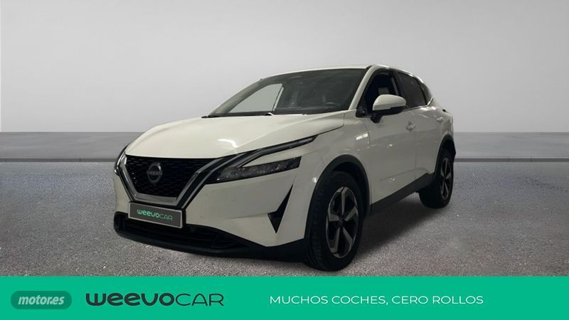 Bienvenido a WeevoCar, ¡Muchos coches, cero rollos! En WeevoCar creemos que comprar o vender un coche de ocasión debería ser fácil, transparente y sin complicaciones. Por eso reinventamos la experiencia: coches de calidad, precios claros y un equipo que te lo pone fácil desde el primer clic. · Financiación a tu medida: Elige la opción que mejor se adapte a ti. Diseñamos planes flexibles para que estrenes coche sin preocupaciones. · Vehículos certificados Todos nuestros coches pasan un control de 100 puntos en nuestros talleres oficiales. Calidad verificada, confianza garantizada. · Garantía mínima de 12 meses Con posibilidad de ampliación para que conduzcas con total tranquilidad. · Entrega donde quieras Llevamos tu coche a cualquier punto de la península por 350 € (IVA incluido). Y si estás en Baleares o quieres enviar tu coche allí: 550 € (IVA incluido). Recogida gratuita en instalación. · Valoramos tu coche a cambio Te damos la mejor tasación del mercado, rápida y sin compromiso. · Precio TODO INCLUIDO Sin sorpresas: IVA y transferencia ya incluidos en el precio final. Y para que no tengas que preocuparte por nada, te gestionamos también el seguro del vehículo en el momento de la compra. Contacta con nosotros a través del formulario web y uno de nuestros asesores te atenderá de forma personalizada. El vehículo ofertado puede no encontrarse físicamente en la ubicación del anuncio. La oferta es válida salvo error tipográfico en el precio o en la ficha. Imágenes no contractuales. ***EQUIPAMIENTO OPCIONAL INCLUIDO*** - Pintura Blanco Sólida ***EQUIPAMIENTO SERIE INCLUIDO*** - Cinco plazas ( 2+3 ) - Seis altavoces - Equipo de audio con radio AM/FM. reproductor de CD. radio digital y pantalla táctil pantalla a color - Control remoto de audio en el volante - Toma/s de 12v en la zona de carga y los asientos delanteros - Cuatro frenos de disco siendo dos ventilados - ABS - Control de crucero con control de crucero adaptativo - Espejo de cortesía iluminado en conductor en acompañante - Sensores de aparcamiento delanteros con sensor y cámara. sensores de aparcamiento traseros con sensor y cámara. sensores de aparcamiento en los lados con cámara - Combustible: sin plomo 95 octanos y Combustible primario: gasolina - Acabados de lujo: pomo de la palanca de cambios en cuero. puertas en cuero sintético y tablero en cuero sintético - Faros con lente elipsoidal. bombilla LED y luz larga con bombilla LED - Regulación de los faros con ajuste de altura automático. sensor de oscuridad y sensor de vehículos en sentido contrario - Encendido diurno automático - Airbag lateral de cortina delantero y trasero - Bandeja trasera rígida - Sujeción de carga - Cierre centralizado con apertura por tarjeta/llave inteligente y contról de los elevalunas - Protección antirrobo - Airbag frontal del conductor. airbag frontal del acompañante desconectable - Airbags laterales delanteros - Dos reposacabezas en asientos delanteros ajustables en altura. tres reposacabezas en asientos traseros ajustables en altura - Cinturón de seguridad delantero en asiento conductor. acompañante y ajustable en altura con pretensores - Cinturón de seguridad trasero en lado conductor. cinturón de seguridad trasero en lado acompañante. cinturón de seguridad trasero en asiento central de 3 puntos - Asientos de tela (material principal) y de tela (material secundario) - Apoyabrazos central delantero - Apoyabrazos trasero - Asiento delantero del conductor individual con ajuste eléctrico ( una ajuste eléctrico ) ajuste longitudinal manual. ajuste manual en altura y eléctrico con ajuste manual del respaldo. asiento delantero del acompañante individual. ajuste longitudinal manual y ajuste manual en altura con ajuste manual del respaldo - Asientos traseros de tres plazas de tipo banco de orientación delantera con banqueta fija y respaldo abatible asimétrico - Volante multi-función de aluminio y cuero ajustable en altura y en profundidad - Dirección asistida eléctrica con endurecimiento progresivo s/velocidad - Sujetavasos en los asientos delanteros y los asientos traseros - Sistema de ventilación con pantalla digital y filtro de pólen calefacción del motor - Controles de climatización diferenciados digitales para conductor/acompañante - Aire acondicionado bizona de automático - Limpiaparabrisas delantero con sensor de lluvia - Elevalunas eléctricos delanteros y traseros con dos de ellos de un solo toque - Navegador con datos vía internet y pantalla a color de 12.30 " con información en 3D y con voz. control mediante pantalla táctil y información de tráfico 31.2 y 36 - Sistema de servofreno de emergencia - Indicador de baja presion de los neumáticos con visualización de presión y sensor Montado en la llanta - Preparación Isofix - Tarjeta / llave inteligente con entrada sin llave y arranque sin llave - Telemática con 0.00 ( 36 meses incluidos) vía teléfono propio con sistema de seguimiento 0 y asistencia por avería - Freno mano electrónico - Sensor de adelantamiento incluye pantalla y activo sin intermitente - Filtro de partículas - Resultado de pruebas de impacto Euro NCAP :. puntuación global: 5.0. protección adultos: 91.0. protección niños: 91.0. protección peatones: 70.0. puntuación ayudas a la seguridad: 95.0. Versión evaluada: Nissan Qashqai 1.3 petrol 4x2 Acenta LHD 5dr OD y Fecha del test: 08 dic 2021 - Control de arranque en pendiente - Encendido automático luces emergencia - Sistema de alarma de colisión: activa los cinturones de seguridad y las luces de freno con asistencia de frenado. sistema antiatropello peatones/ciclistas. monitorización del conductor y delantero y trasero de 10 Km/h como mínimo aviso visual/ acústico y funciona por debajo de 50 km/h / 30 mph - Bluetooth - Start/Stop parada y arranque automático - Alerta de cambio de carril: - Cristal trasero oscurecido en el lateral trasero - Conexión para: entrada AUX delantera. USB d