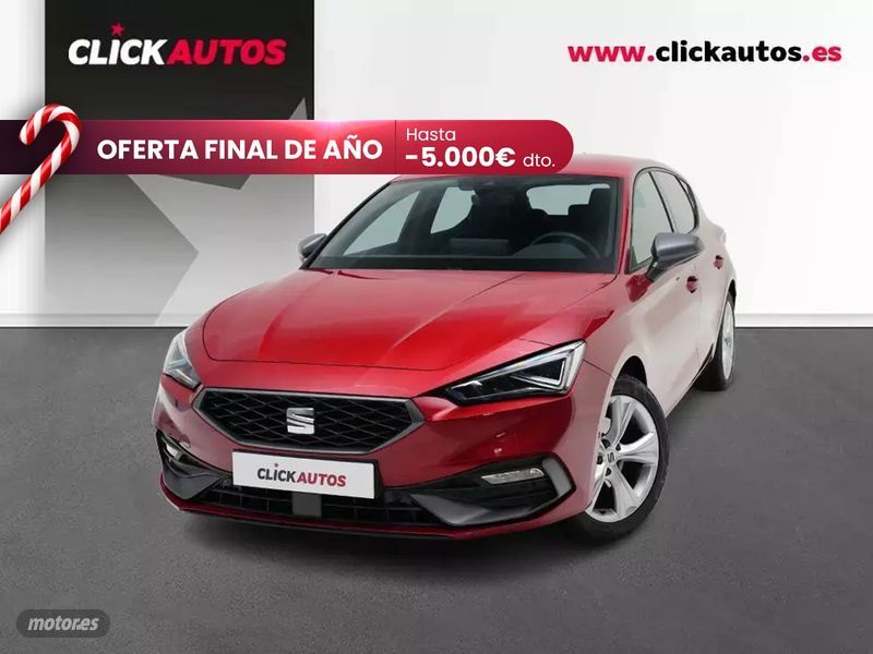 Acabado FR Special Edition DSG. Disponible también en los colores Negro Midnight, Blanco Glaciar, Azul saphire, Gris magnetic, Rojo desire. También en Península y Baleares. *Precio promocional si financias con nosotros y entregando un vehiculo de más de 10 años.Garantía 12 meses. Este anuncio es meramente informativo, no es vinculante ni contractual. Consulta a nuestros comerciales. Más de 2000 coches en stock permanente, visítenos en ClickAutos. - Climatronic Safe & Driving pack L: Rec - señales tráfico + Light Assist + Control de Crucero Adaptativo + Lane Assist Cámara de visión trasera + Asistente de aparcamiento automático Servodirección para aparcamiento Faros principales LED con distribución variable de la luz SEAT Connect 3 años Bluetooth con cargador inalámbrico Sistema de navegación (Baseline) Digital Cockpit Sistema de cierre y arranque sin llave "Keyless Advanced" sin cierre de seguridad Retrovisores ext - ajustables/abatibles eléctricamente - térmicos